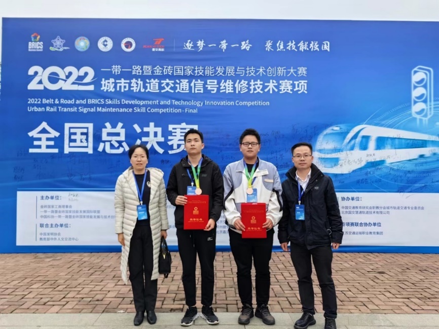 2023421-25日,2022-2023“一帶一路”暨金磚國家技能發(fā)展與技術(shù)創(chuàng)新大賽城市軌道交通信號維修技術(shù)賽項全國總決賽在南京交通職業(yè)技術(shù)學(xué)院展開激烈角逐。軌道交通學(xué)院派出陳偉、林達(dá)銀兩位同學(xué)代表學(xué)校參賽并獲得全國三等獎的好成績。
