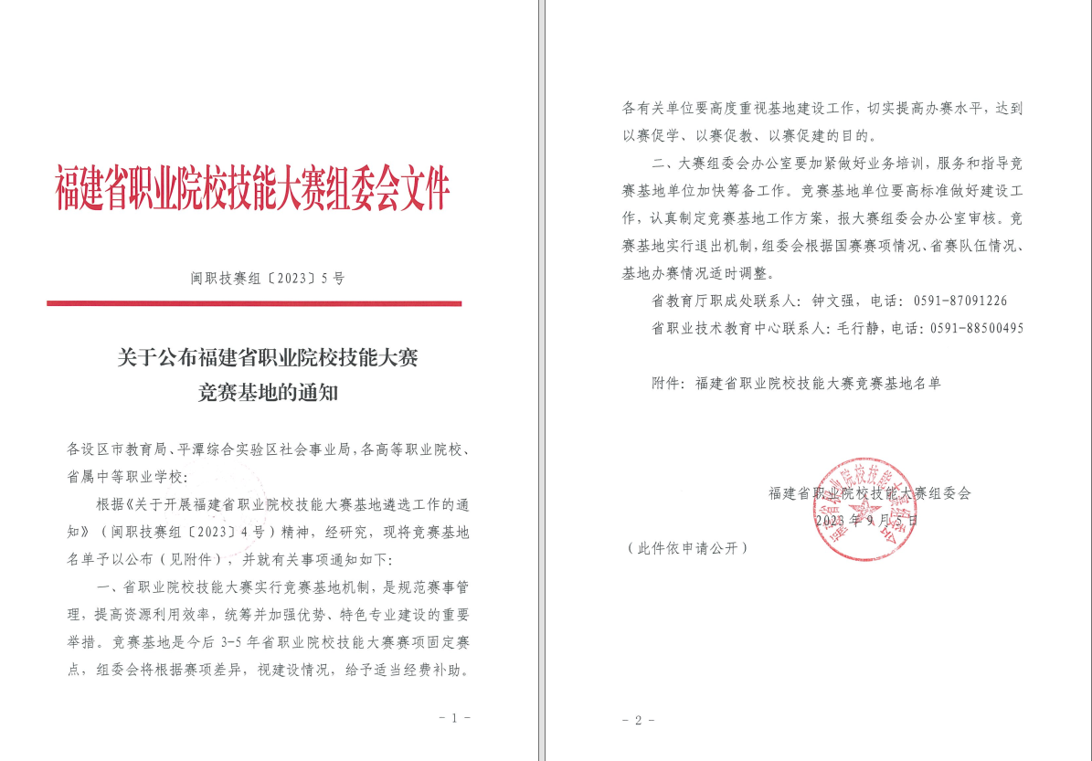 我院獲批福建省職業(yè)院校技能大賽3個(gè)賽項(xiàng)競(jìng)賽基地
