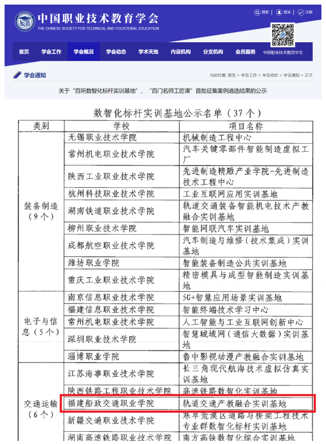 近日,中國職業(yè)技術教育學會發(fā)布《關于“百所數(shù)智化標桿實訓基地”、“百門名師工匠課”首批征集案例遴選結果的公示》,我校軌道交通學院“軌道交通產(chǎn)教融合實訓基地”成功入選全國首批“百所數(shù)智化標桿實訓基地”。