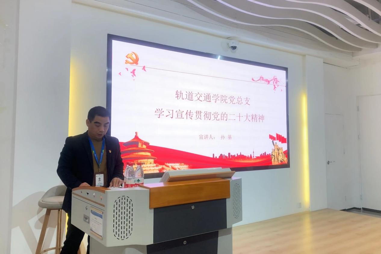 2023年3月1日,軌道交通學(xué)院黨總支書記孫基以《學(xué)習(xí)宣傳貫徹黨的二十大精神》為題,在黨建館為軌道交通學(xué)院2021級第一批和第二批入黨積極分子上了一堂別開生面的思政課。