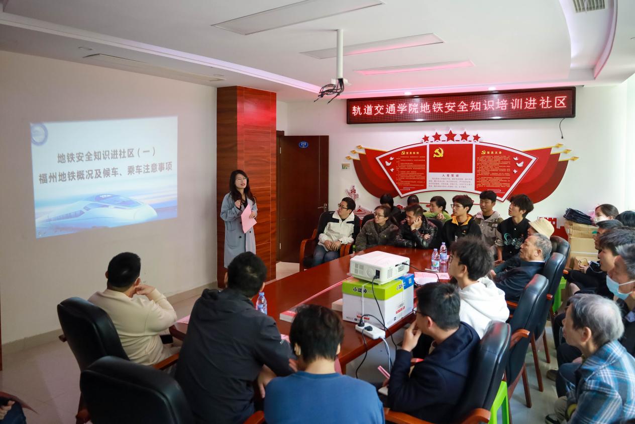 隨著社會(huì)不斷發(fā)展、完善,我們出行的方式也越來(lái)越多樣化,乘坐地鐵就是其中較方便、快捷且污染較少的一種。那么,福州地鐵的發(fā)展又是怎樣的呢?城市軌道交通專業(yè)又是怎樣的呢?為了進(jìn)一步宣傳城市軌道交通專業(yè)群,普及安全乘車知識(shí),貫徹綠色出行的理念,2023年11月軌道交通學(xué)院黨總支書記孫基、軌道交通學(xué)院分團(tuán)委書記林欣欣、輔導(dǎo)員張毅、輔導(dǎo)員鄭華輝、輔導(dǎo)員李雯婷以及學(xué)生干部前往倉(cāng)山區(qū)上渡街道濱州社區(qū)開(kāi)展了地鐵安全知識(shí)進(jìn)社區(qū)活動(dòng)。