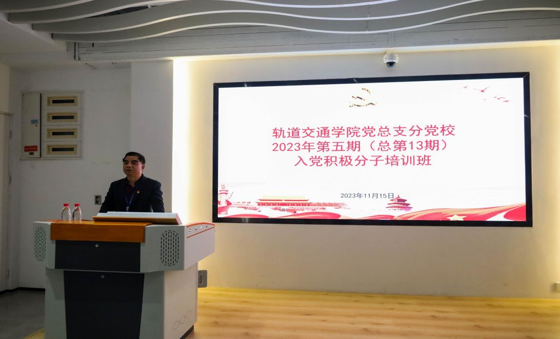 為深入學(xué)習(xí)貫徹習(xí)近平新時(shí)代中國(guó)特色社會(huì)主義思想和黨的二十大精神,切實(shí)做好入黨積極分子培養(yǎng)教育工作,提升發(fā)展黨員質(zhì)量,2023年11月15日,軌道交通學(xué)院黨總支書(shū)記-孫基在黨建館舉行第十三期入黨積極分子培訓(xùn)。