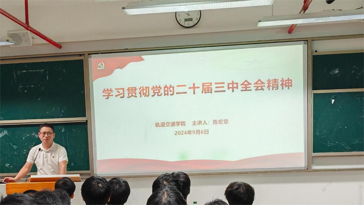 為全面深入學習領會黨的二十屆三中全會精神,引導師生把思想和行動統(tǒng)一到全會精神上來。9月6日,軌道交通學院第五黨支部開展學習貫徹黨的二十屆三中全會精神宣講會。軌道交通學院黨總支宣傳委員、副院長、第五黨支部書記陳宏意作《學習貫徹黨的二十屆三中全會精神》專題宣講,支部教師、學生黨員和入黨積極分子等110余人參加了宣講會。