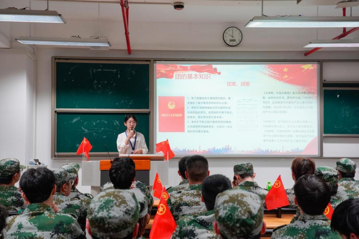團(tuán)委副書(shū)記鄭華輝詳細(xì)闡述了共青團(tuán)的性質(zhì)、團(tuán)旗、團(tuán)徽、團(tuán)歌以及共青團(tuán)的發(fā)展史。他充滿(mǎn)了對(duì)青年學(xué)生的殷切期望,希望新時(shí)代的中國(guó)青年能以實(shí)現(xiàn)中華民族偉大復(fù)興為己任,不負(fù)時(shí)代以及黨和人民的期望。在青春的賽道上,如乘風(fēng)破浪般奮力奔跑,勇往直前。