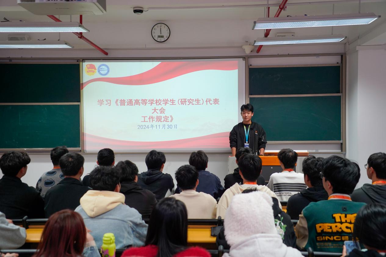 學院學生會主席團成員李嘉旭領(lǐng)讀《普通高等學校學生(研究生)代表大會工作規(guī)定》《關(guān)于推動高校學生會(研究生會)深化改革的若干意見》《關(guān)于學聯(lián)學生會工作人員改進作風服務同學的若干規(guī)定》等相關(guān)文件,文件中提出鞏固深化新時代高校學生會(研究生會)改革和建設的建議,提倡學生會應把牢政治方向,加強領(lǐng)導指導,當好橋梁紐帶,抓實隊伍建設,提升服務實效,堅守初心,消除不良風氣。