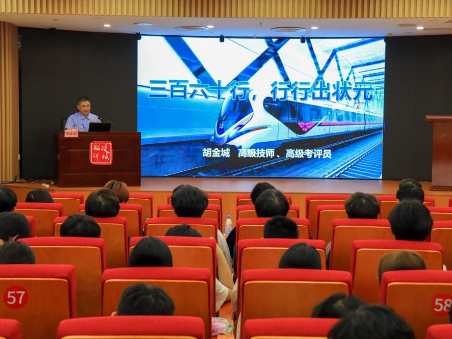 為深入學習貫徹黨的二十大精神和習近平總書記關于大力弘揚勞模精神、勞動精神、工匠精神的重要指示,激勵廣大師生在新時代征程中勇擔使命、砥礪奮進,5月28日上午,由福建省總工會指導、學院工會與軌道交通學院聯合承辦的“勞模工匠進校園”系列活動在福道園學術報告廳舉行。本次活動特邀廈門市“胡金城技能大師工作室”領辦人、全國技術能手、廈門市“行業(yè)工匠”、“五一勞動獎章”獲得者、廈門地鐵運營有限公司風水電高級技師胡金城走進我院,作題為《三百六十行,行行出狀元》的講座。學院黨政領導班子、各級師生代表及工會成員共一百五十余人參加活動。