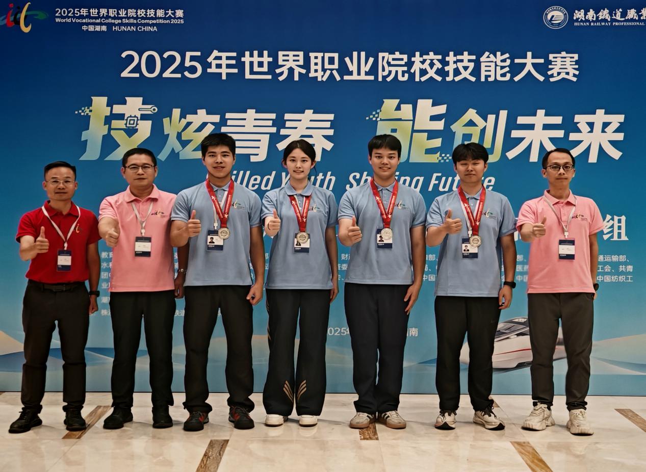 2025年8月27日至31日,2025年世界職業(yè)院校技能大賽軌道交通運(yùn)輸賽道總決賽爭奪賽在湖南省株洲市成功舉辦。我院軌道交通學(xué)院學(xué)子彭溢、鄭家鎮(zhèn)、李瑋杰、王希盈四位同學(xué)組成代表隊(duì),憑借扎實(shí)的專業(yè)功底、默契的團(tuán)隊(duì)協(xié)作和頑強(qiáng)的拼搏精神,最終從全國155支隊(duì)伍中成功突圍,斬獲本次大賽銀獎,為學(xué)院贏得了榮譽(yù)。