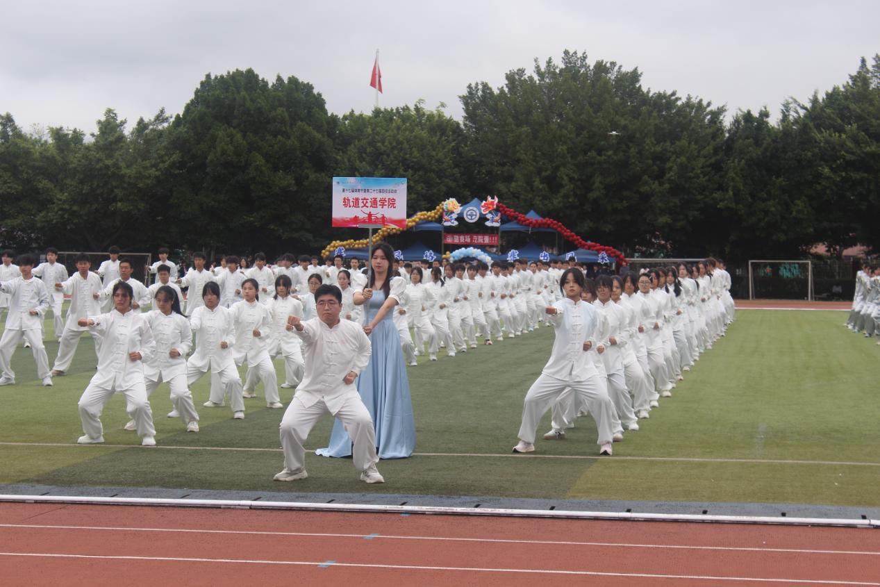 開幕式表演中,軌道交通學(xué)院的同學(xué)們步伐矯健,口號(hào)響亮,臉上洋溢著自信的光芒。他們伴隨著《第一天》音樂的節(jié)拍舞動(dòng)青春,活力四射的動(dòng)作彰顯了軌道交通學(xué)院的運(yùn)動(dòng)精神。各學(xué)院方陣都是一道流動(dòng)的風(fēng)景,贏得了看臺(tái)上陣陣熱烈的掌聲。