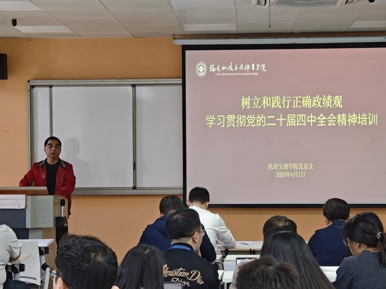 為深入樹立和踐行正確政績觀,學(xué)習(xí)貫徹黨的二十屆四中全會精神,精準把握"十五五"時期發(fā)展藍圖,4月1日,軌道交通學(xué)院黨總支召開全體黨員大會,組織開展專題學(xué)習(xí)培訓(xùn)。會議由學(xué)院黨總支書記孫基主持,全體教工黨員參加。