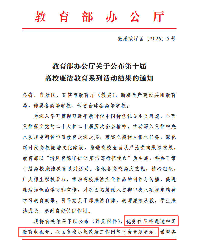 本次活動(dòng)由教育部主辦,以“清風(fēng)育德守初心 廉潔篤行擔(dān)使命”為主題,旨在深化高校廉潔文化建設(shè),引導(dǎo)師生廉潔自律、修身成長(zhǎng)?;顒?dòng)得到全國(guó)高校重視和師生積極參與,其中“話廉修德”征文遴選名單共101件,競(jìng)爭(zhēng)激烈。