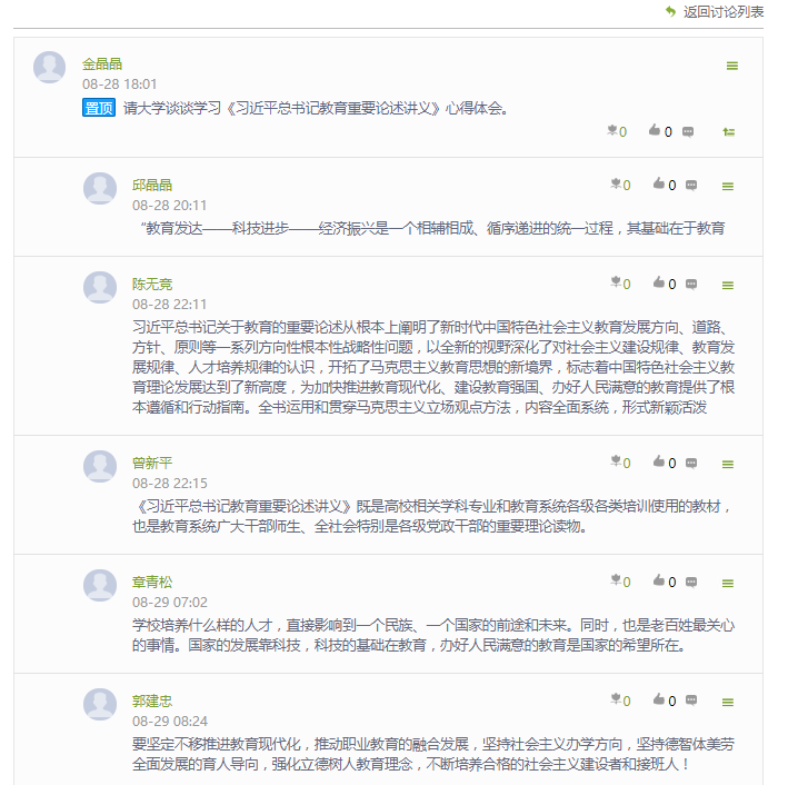 根據(jù)學(xué)校疫情防控工作要求,我院黨總支利用“學(xué)習(xí)通”組織全體黨員開展學(xué)習(xí)和討論,50名黨員均認(rèn)真完成學(xué)習(xí)任務(wù)。學(xué)習(xí)過程中,黨員按要求堅持讀原文,深學(xué)細悟、研機析理,取得學(xué)習(xí)成效。同時,各支部組織黨員開展學(xué)習(xí)討論,并結(jié)合職業(yè)教育特點和自身業(yè)務(wù)工作情況,突出學(xué)做結(jié)合,注重融會貫通,將《講義》精神內(nèi)涵和具體要求融入教育教學(xué)過程中。