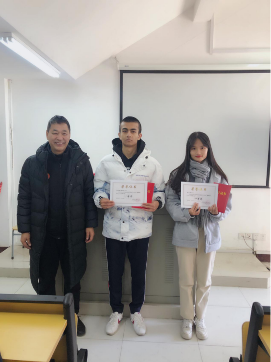 在分別給一、二、三等獎(jiǎng)的獲獎(jiǎng)學(xué)生頒發(fā)了獎(jiǎng)狀和榮譽(yù)證書后,方院長對在場獲獎(jiǎng)學(xué)生表示了祝賀并給即將參加省賽的學(xué)生給予了大力的鼓舞支持;吳菲菲主任希望3名一等獎(jiǎng)獲獎(jiǎng)的選手在老師的指導(dǎo)下認(rèn)真制定計(jì)劃、調(diào)整心態(tài),全力備戰(zhàn)英語口語技能大賽的省賽,再創(chuàng)佳績,為學(xué)院爭光。