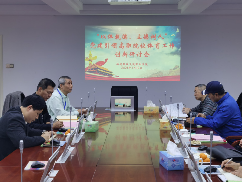 3月12日下午,通識教育學院召開“以體載德、立德樹人”黨建引領高職院校體育工作創(chuàng)新研討會,會議邀請原福建省教育廳體衛(wèi)藝語處正處級調研員江仁虎、集美大學體育學院鄭旭旭教授、福建師范大學體育科學學院張涵勁教授、福州大學體育部彭雪涵教授、福建農林大學體育部黃國龍教授、福建醫(yī)科大學體育部董華教授等專家,學院黨委書記張海明、通識教育學院院長方儒欽、副院長金晶晶和郭建忠參加會議。