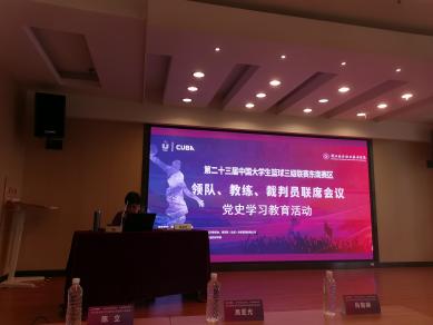 比賽期間,組委會(huì)將黨史學(xué)習(xí)教育與賽事相結(jié)合,在領(lǐng)隊(duì)、教練、裁判員聯(lián)席會(huì)上舉辦“黨史學(xué)習(xí)教育”?;顒?dòng)內(nèi)容詳實(shí),梳理了習(xí)近平總書記主政浙江期間制定的“八八戰(zhàn)略”,深入介紹習(xí)近平總書記如何將欠發(fā)達(dá)鄉(xiāng)鎮(zhèn)村列入工作規(guī)劃、納入整體發(fā)展框架,進(jìn)行專門安排和部署。本次黨史學(xué)習(xí)教育讓各領(lǐng)隊(duì)、教練、裁判員在外出比賽之余收獲滿滿,收到高度肯定。會(huì)后,我院第二黨支部郭建忠書記在宿舍內(nèi)分別對(duì)男女籃球隊(duì)隊(duì)員召開座談會(huì),向同學(xué)們介紹習(xí)近平總書記在浙江的工作事跡,解析了在全球疫情肆虐的環(huán)境下,我國各項(xiàng)體育賽事仍在順利開展的原因,體現(xiàn)了我黨在疫情防控方面做出的卓越貢獻(xiàn)。會(huì)后同學(xué)們紛紛表示,當(dāng)前的比賽機(jī)會(huì)來之不易,彰顯我國社會(huì)主義制度的優(yōu)越性,我們要珍惜機(jī)會(huì),每個(gè)同學(xué)都要有一顆愛國愛黨的心。通過此次活動(dòng),極大激發(fā)了同學(xué)們的愛國主義情懷,達(dá)到“以體育德 以賽育人”的育人目標(biāo)。