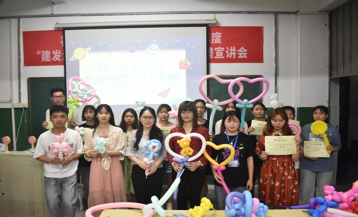 為了豐富同學(xué)們的課余生活,鍛煉動(dòng)手實(shí)踐能力,激發(fā)想象力、創(chuàng)造力,進(jìn)一步提高同學(xué)們對(duì)手工制作的興趣。2021年05月28日(周五)19:00-22:00,DIY手工協(xié)會(huì)在院團(tuán)委、通識(shí)教育學(xué)院領(lǐng)導(dǎo)的帶領(lǐng)下,在北區(qū)10號(hào)樓104教室舉辦了“福建船政交通職業(yè)學(xué)院首屆DIY氣球造型設(shè)計(jì)大賽”。