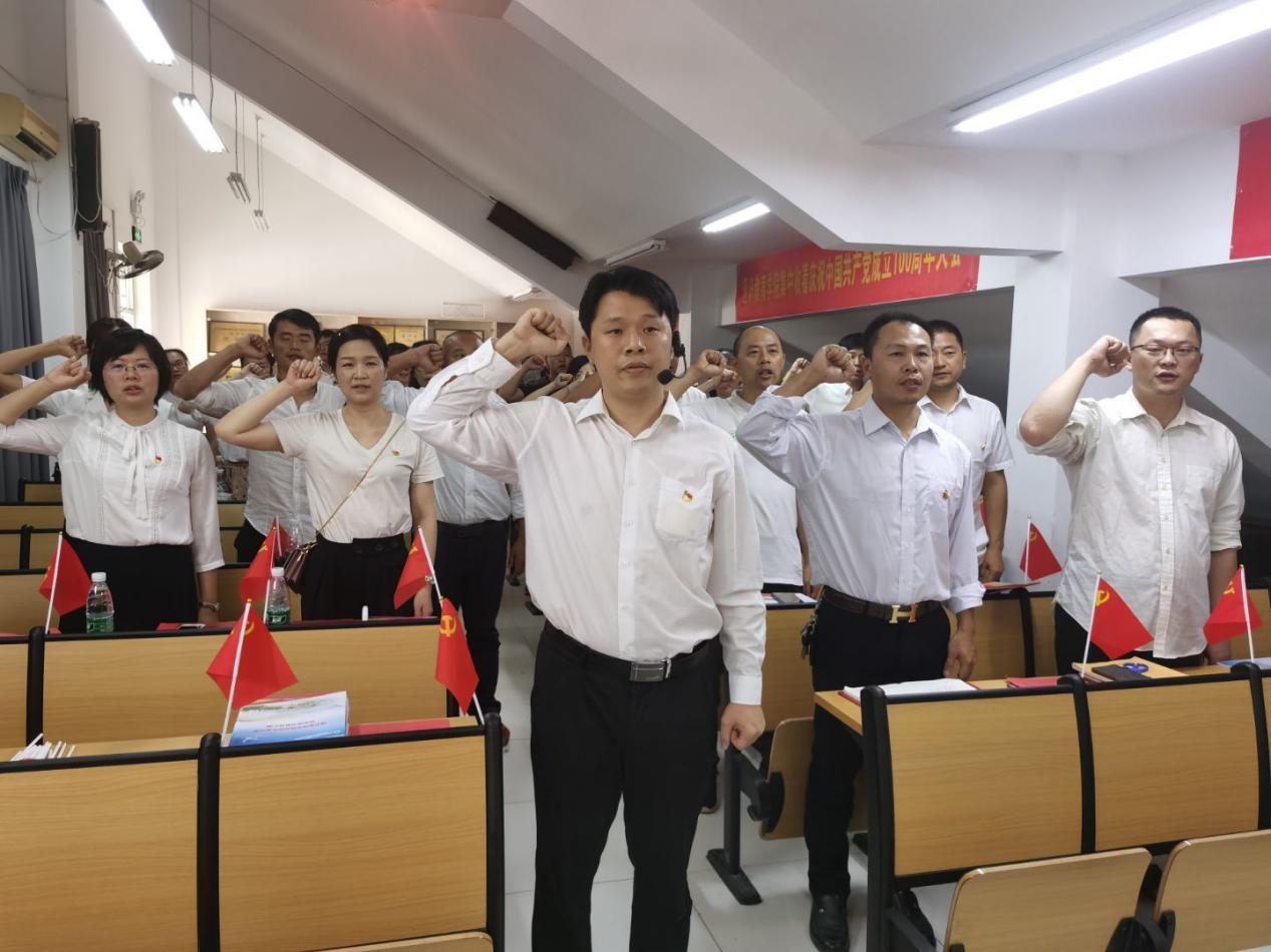 面向莊嚴(yán)的黨旗,黨員教師們?cè)诳傊Ц睍?shū)記金晶晶帶領(lǐng)下,舉起右拳,莊嚴(yán)宣誓。伴隨著一句句鏗鏘有力的誓言,“我志愿加入中國(guó)共產(chǎn)黨,擁護(hù)黨的綱領(lǐng),遵守黨的章程,履行黨員義務(wù),執(zhí)行黨的決定,嚴(yán)守黨的紀(jì)律,保守黨的秘密,對(duì)黨忠誠(chéng),積極工作,為共產(chǎn)主義奮斗終身,隨時(shí)準(zhǔn)備為黨和人民犧牲一切,永不叛黨?!痹S貴福、陳占通、陳無(wú)競(jìng)等老黨員同志紛紛表示作為黨員教師,不忘初心使命,增強(qiáng)黨性觀念,發(fā)揮黨員先鋒模范作用;要講政治、顧大局,勇于承擔(dān)工作責(zé)任,為黨的事業(yè)和教育事業(yè)不懈奮斗。