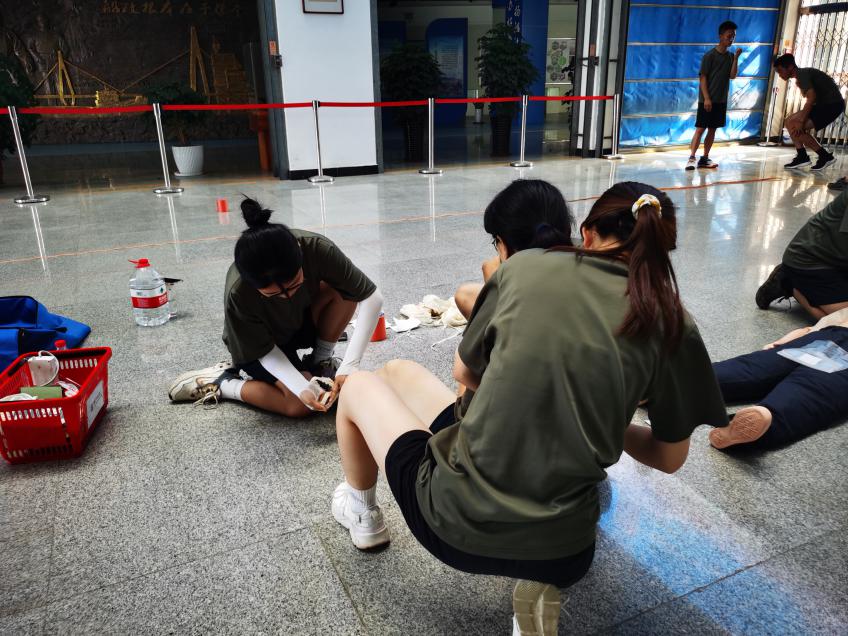 “頭部包扎”、“小腿包扎”、“胸部包扎”、“手臂骨折固定”、“小腿骨折固定”、“心肺復(fù)蘇”、“匍匐搬運(yùn)傷員”、“掮法搬運(yùn)傷員”,經(jīng)過(guò)了參賽隊(duì)員們一次次艱苦的訓(xùn)練,才有了他們齊心協(xié)力的表現(xiàn)。