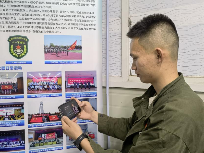 退伍學生傅承志說:國家雖然并不要求我們每個人都參軍為國防事業(yè)的貢獻,但是我們本身應該有這個志氣和抱負,從我做起,保守國家秘密,維護國家形象,做一個愛國有志的新青年。