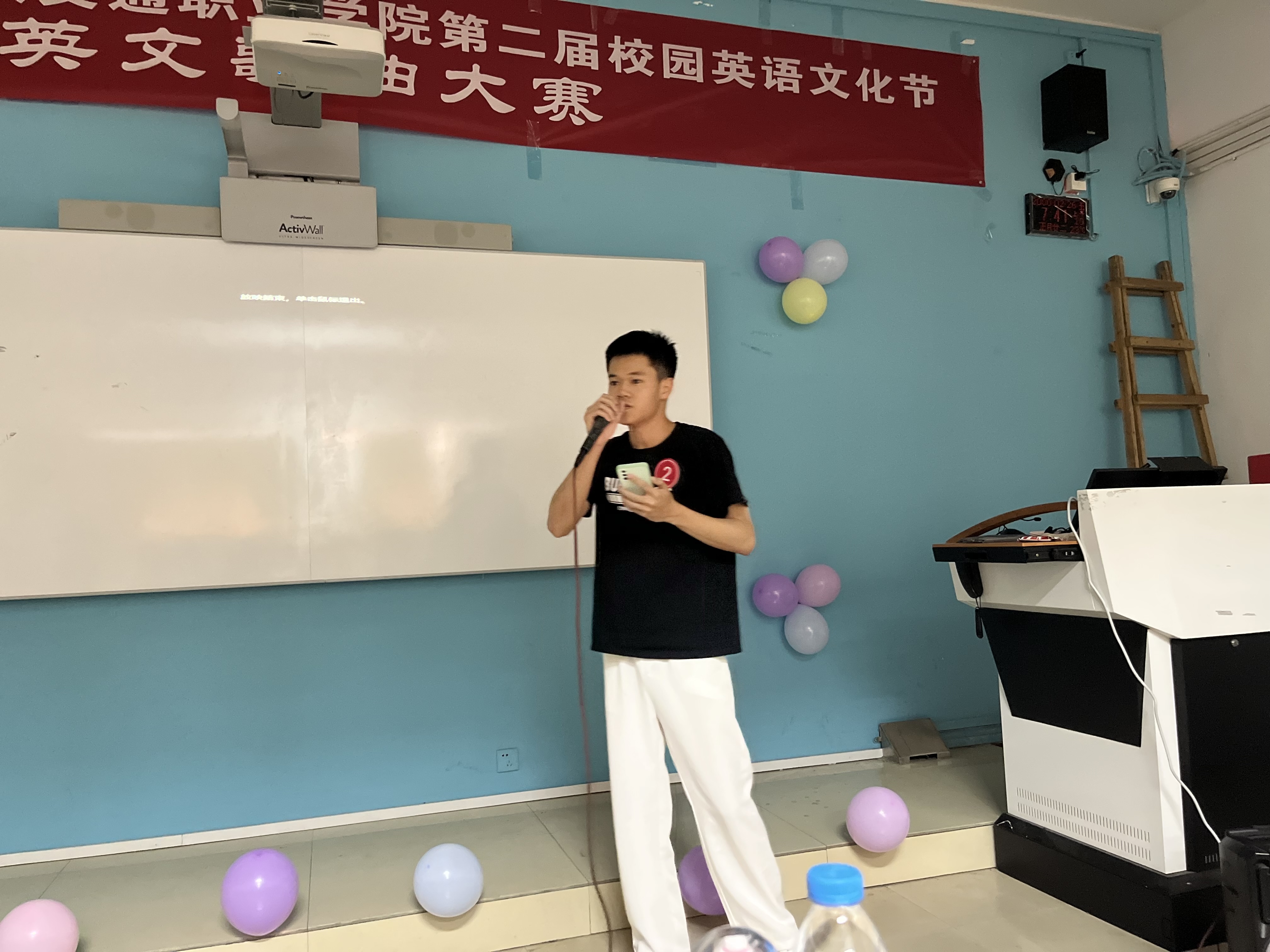 4月23日下午,第二屆校園英語文化節(jié)系列活動(dòng)之“Voice of the Future”英文歌曲比賽決賽在北區(qū)2號(hào)樓2-2教室成功舉辦。經(jīng)過前期初賽選拔,共有11名選手參與本次決賽獎(jiǎng)項(xiàng)的角逐。本次大賽由我院英語教研室章素蘋主任、梁華蓉教授、連海寧老師、吳菲菲老師、謝慧老師擔(dān)任評(píng)委,由20電子商務(wù)5班李圣杰和李晴同學(xué)主持。