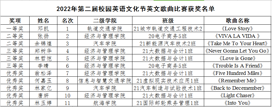 本次英文歌曲大賽進(jìn)一步提高了學(xué)生英語學(xué)習(xí)興趣,增強(qiáng)自主學(xué)習(xí)英語的意識(shí),豐富校園英語文化,為同學(xué)們提供了一個(gè)展示自我英語水平和青春靚麗風(fēng)采的平臺(tái),真正實(shí)現(xiàn)“唱響青春、唱響未來”。