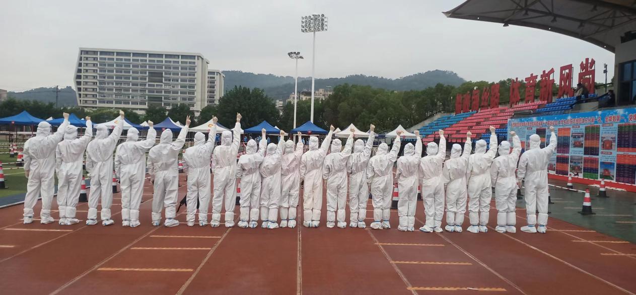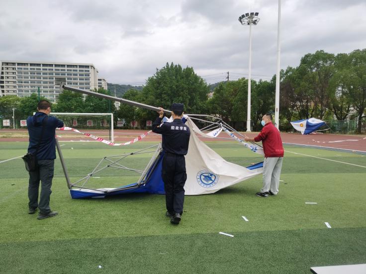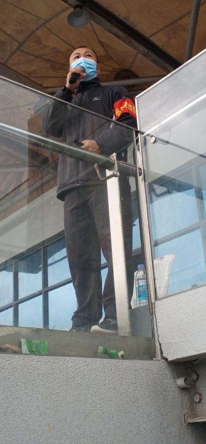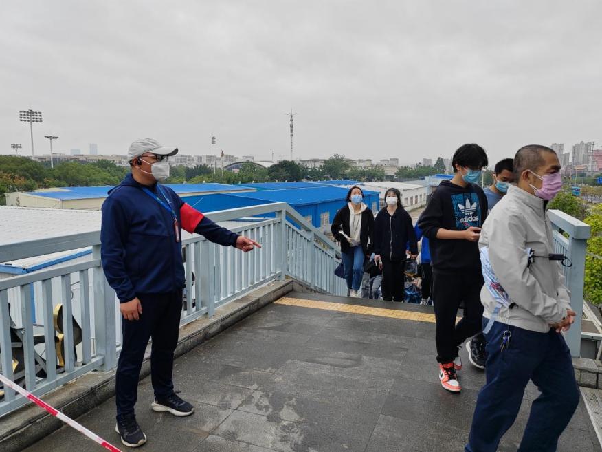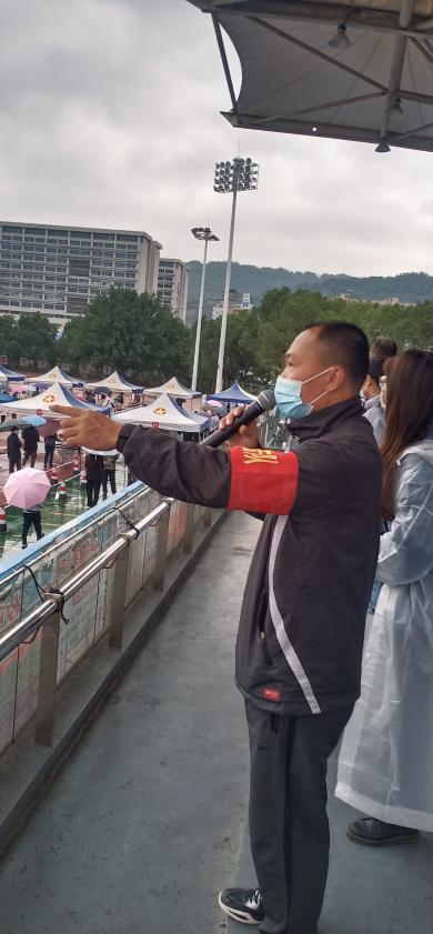 “請(qǐng)同學(xué)們保持一米間隔,打開(kāi)健康碼,把手機(jī)屏幕調(diào)亮”。每天,郭建忠在學(xué)院青春田徑場(chǎng)(原名:北區(qū)田徑場(chǎng))協(xié)調(diào)校內(nèi)全員核酸檢測(cè)人員秩序,助力校內(nèi)全員核酸檢測(cè)高效有序進(jìn)行。校內(nèi)全員核酸檢測(cè)結(jié)束后,郭建忠和章青松、校園保安一起整理青春體育場(chǎng)核酸檢測(cè)現(xiàn)場(chǎng)。郭建忠說(shuō),“我們黨員要從大局出發(fā),積極服務(wù)學(xué)校疫情防控工作”。