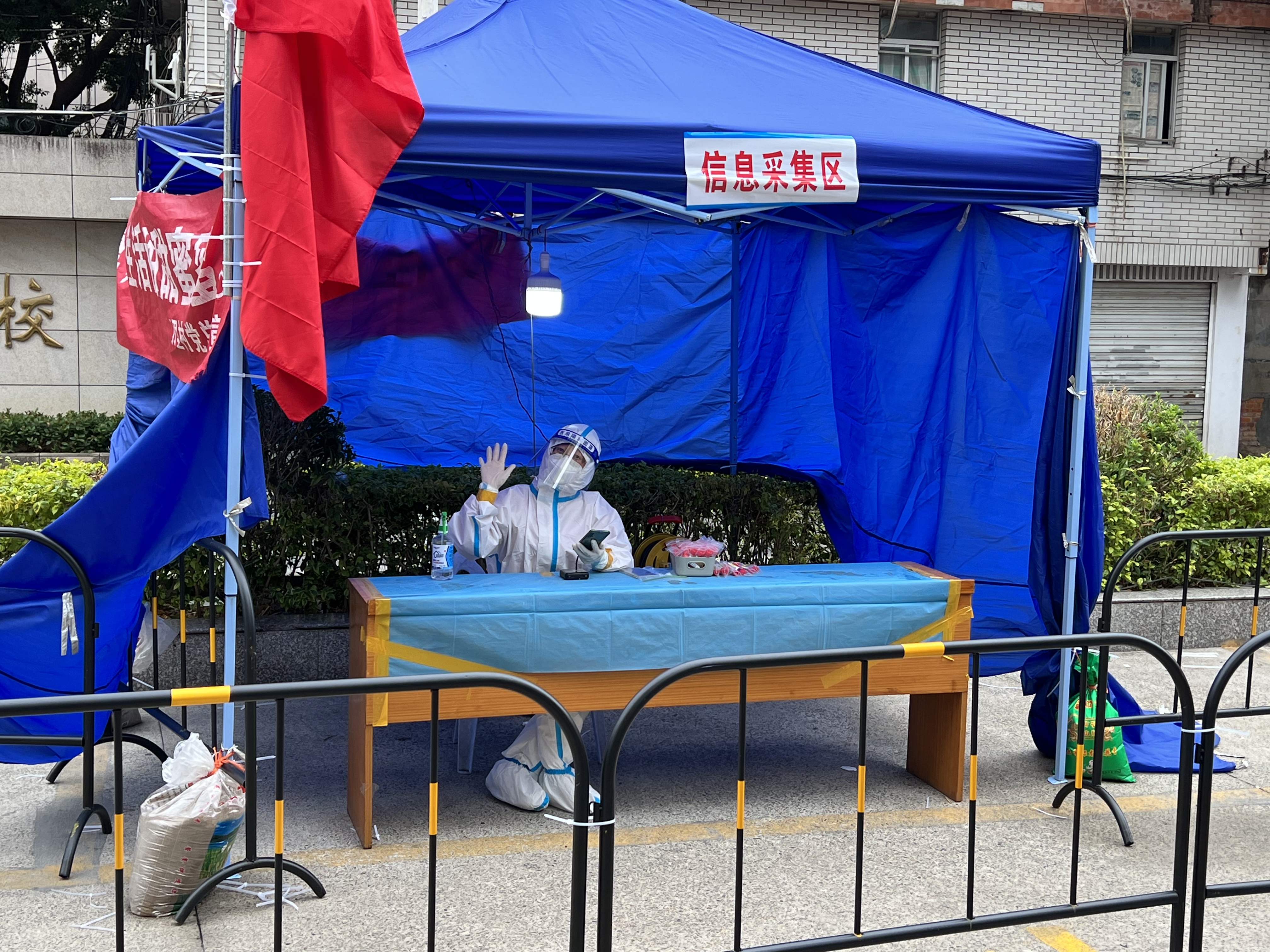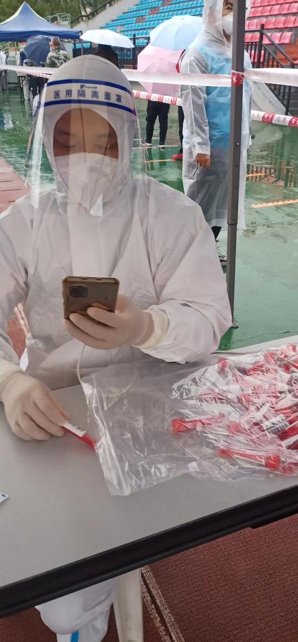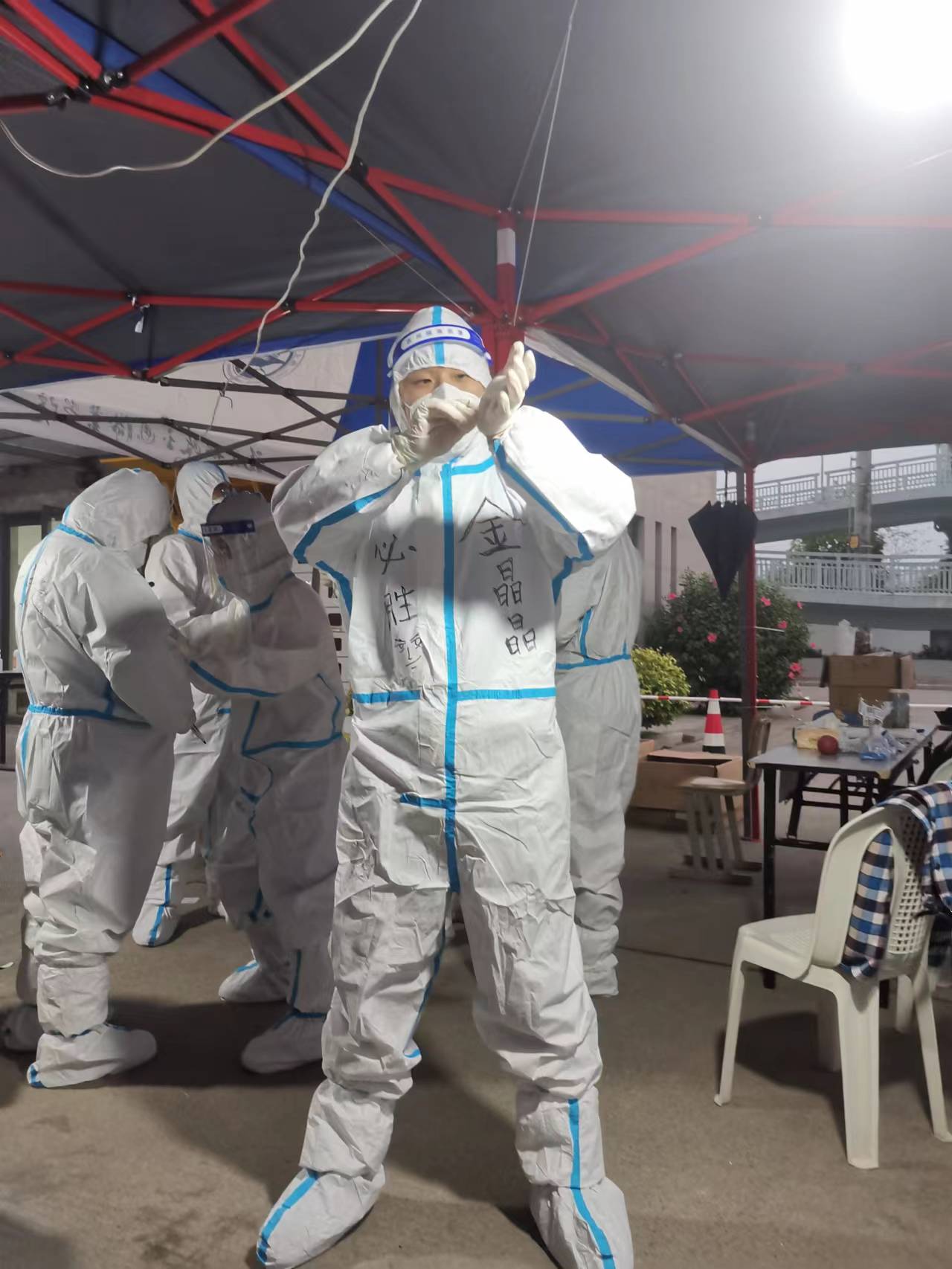 校園封閉管理期間,曾新平穿上防護(hù)服,化身“防護(hù)白”,聽(tīng)從指揮,支援校內(nèi)全員核酸檢測(cè)、學(xué)生宿舍管理等工作。從學(xué)生生活物資的配送,到核酸檢測(cè)掃碼,不辭辛苦,認(rèn)真負(fù)責(zé)。曾新平說(shuō),“愿疫情早點(diǎn)結(jié)束,福州加油!船政加油!”