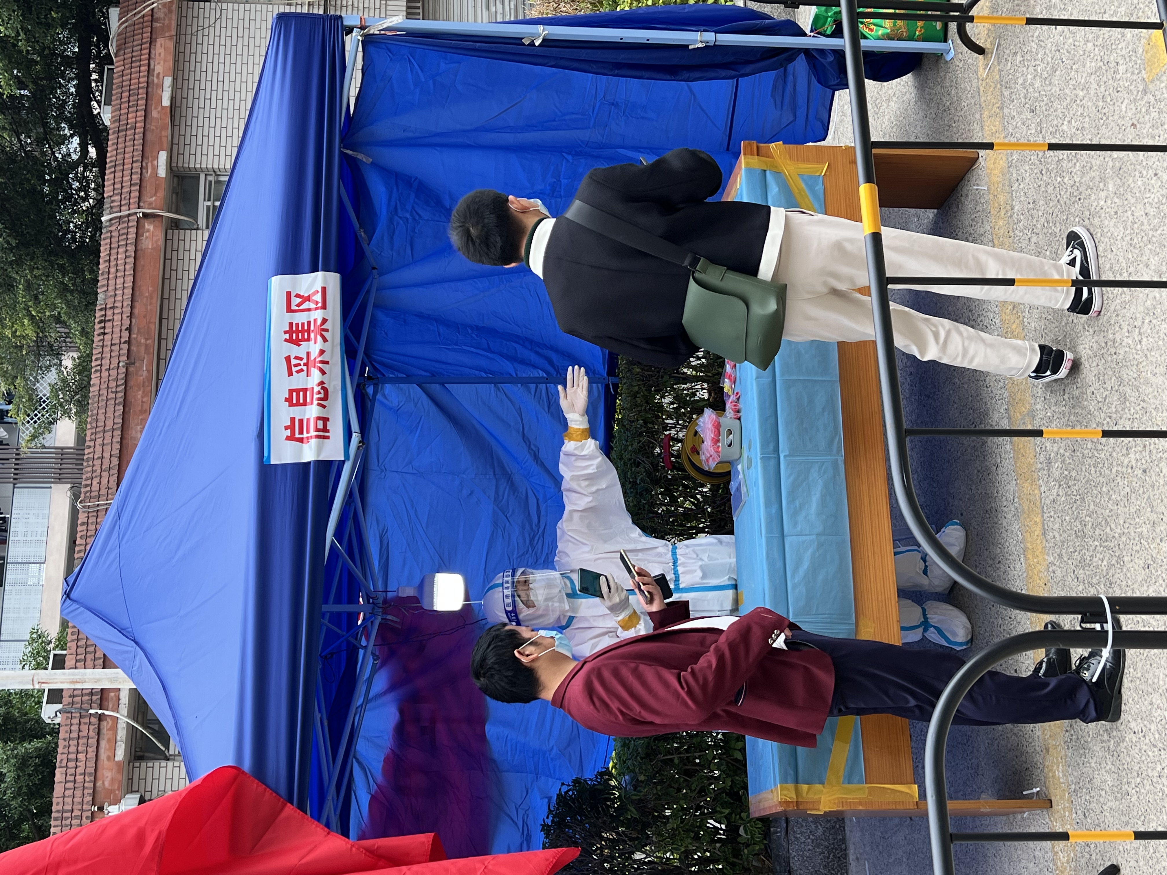 “請(qǐng)大家間隔一米,保持安全距離”“請(qǐng)佩戴好口罩”“請(qǐng)大家提前出示檢測(cè)二維碼”……在校內(nèi)全員核酸檢測(cè)現(xiàn)場(chǎng),章青松化身掃碼員或引導(dǎo)員,與黨員教師志愿者并肩戰(zhàn)斗,全程配合。他們分工明確、配合默契,保障了核酸檢測(cè)工作的順利完成,用實(shí)際行動(dòng)筑牢戰(zhàn)“疫”堡壘。