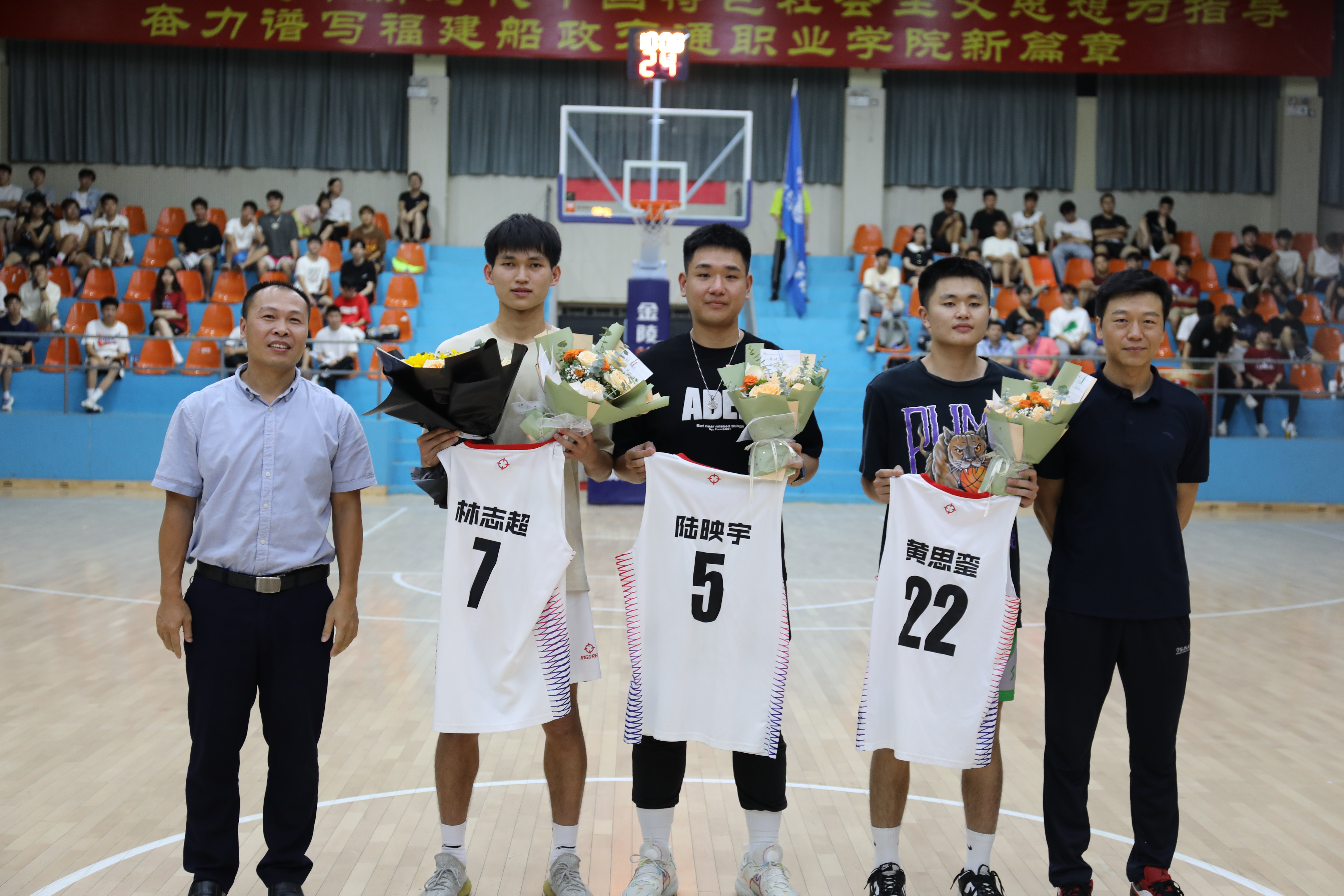 近年來(lái),我校男女籃連續(xù)兩年奪得兩屆CUBA福建省基層賽冠軍、省運(yùn)會(huì)冠軍;男籃成功拿奪得東南賽冠軍,全國(guó)第四;女籃獲得東南賽亞軍,全國(guó)第二的好成績(jī)。同時(shí),在男子5v5的籃球聯(lián)賽決賽中場(chǎng),學(xué)校還為即將畢業(yè)的男女籃隊(duì)員舉行退役儀式,體現(xiàn)了船政的籃球文化和人文關(guān)懷,希望即將畢業(yè)的隊(duì)員們將船政籃球的拼搏精神傳遞到下去。