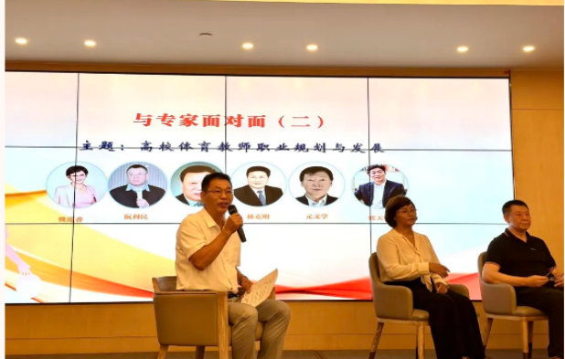 主持人:南京工業(yè)大學(xué)張?zhí)旆褰淌冢阕鳛橹袊?guó)壘球?qū)W院的院長(zhǎng),在體教融合的背景下,如何提升公體老師帶隊(duì)(訓(xùn)練)能力。