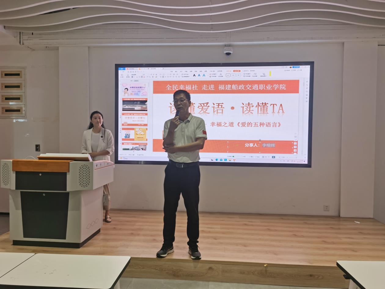 2023年9月20日下午,我院邀請(qǐng)全民幸福社福州院院長(zhǎng)李榕輝老師做以題為《讀懂愛(ài)語(yǔ)讀懂TA》的培訓(xùn)。李榕輝老師是心啟動(dòng)家庭文化主理人、國(guó)家三級(jí)心理咨詢師,國(guó)家三級(jí)人力資源管理師、家庭治療暨親子教育指導(dǎo)師、閩清縣心理咨詢師協(xié)會(huì)負(fù)責(zé)人。我院全體教職工和寧夏職業(yè)技術(shù)學(xué)院侯宗麗老師參加培訓(xùn),培訓(xùn)課由我院方儒欽院長(zhǎng)主持。