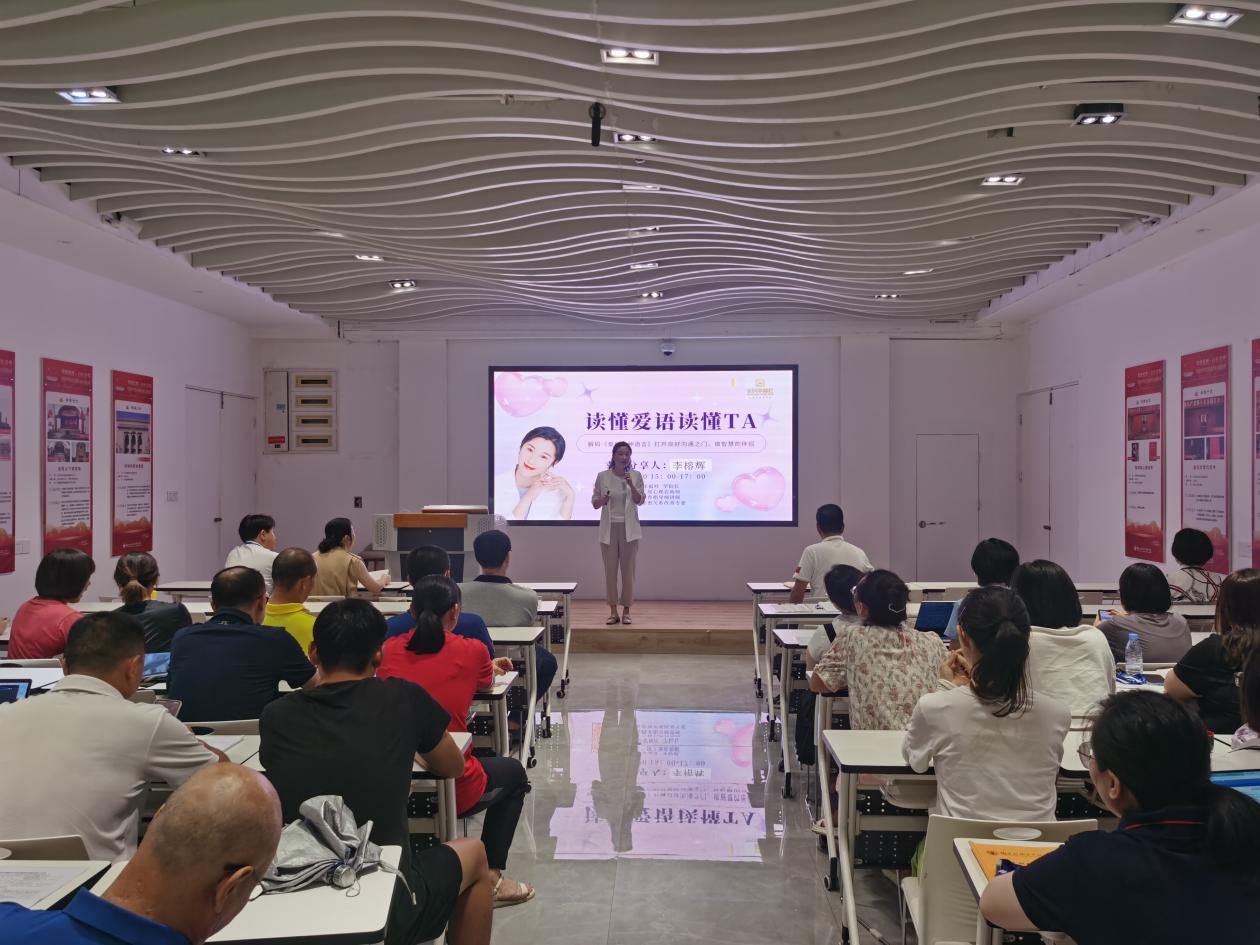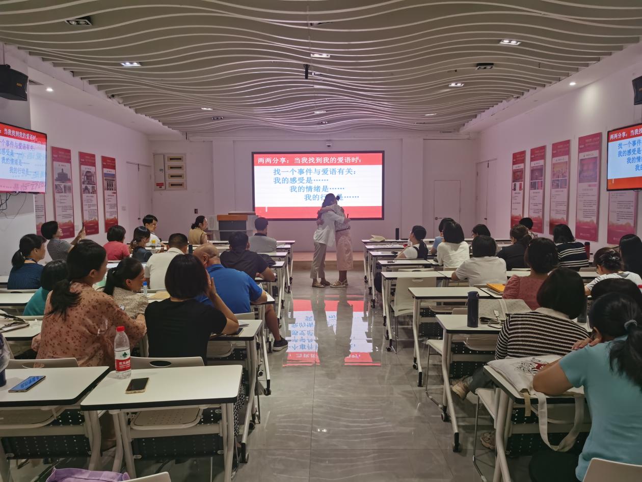 課上,李榕輝老師從教師心理健康出發(fā),結(jié)合生動(dòng)的案例和自身經(jīng)歷,介紹家庭親子溝通的重要性、意義和途徑,重點(diǎn)闡述了肯定的言詞、精心的時(shí)刻、接受禮物、服務(wù)的行動(dòng)和身體的接觸等“愛(ài)的五種語(yǔ)言”,以及具體表達(dá)方式。現(xiàn)場(chǎng)氣氛活躍,李榕輝開(kāi)展多次互動(dòng)游戲、測(cè)試、冥想母愛(ài)之光等活動(dòng),有效教師們打開(kāi)良好溝通之門(mén),提高與家人溝通的質(zhì)量。老師們紛紛表示,培訓(xùn)課氛圍感好,實(shí)用性強(qiáng),工作離不開(kāi)家庭,離不開(kāi)良好的親子關(guān)系,從培訓(xùn)課中學(xué)會(huì)了實(shí)用親子表達(dá)溝通的方式和技巧。