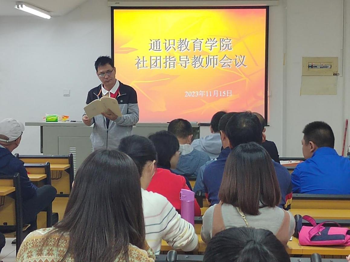 11月15日,在通識(shí)教育學(xué)院體育多媒體教室,我院召開社團(tuán)指導(dǎo)教師會(huì)議,我院領(lǐng)導(dǎo)班子和現(xiàn)任社團(tuán)指導(dǎo)教師參加會(huì)議,會(huì)議由我院方儒欽院長(zhǎng)主持。