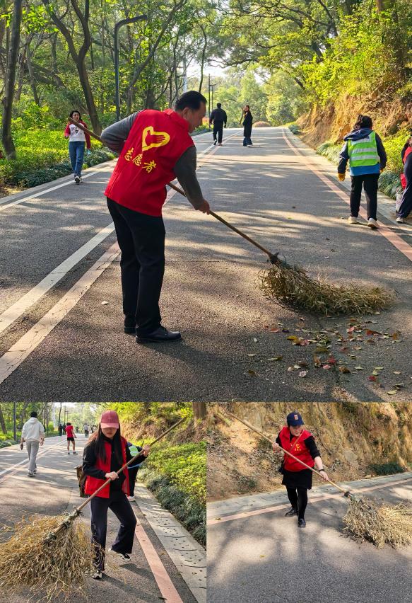 活動伊始,通識教育學院黨總支書記陳火城做動員講話,強調(diào)黨員要立足實際、服務群眾,將理論學習轉(zhuǎn)化為實踐行動。全體黨員身著紅色志愿馬甲,攜帶掃帚、垃圾夾、垃圾袋等工具,沿步道清掃落葉、撿拾紙屑和塑料瓶;深入綠化帶,徒手拔除雜草、整理枯枝,并對草坪進行平整維護。黨員們分工協(xié)作,經(jīng)過兩小時的辛勤勞動,整治綠化區(qū)域500余平方米,公園環(huán)境煥然一新。