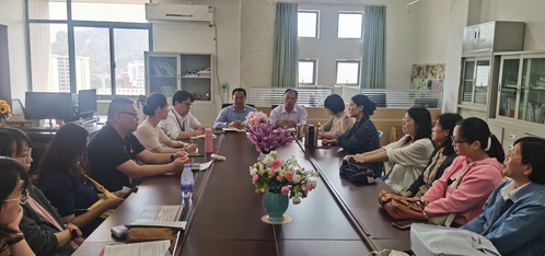 4月16日,通識(shí)教育學(xué)院黨總支書記陳火城、院長(zhǎng)郭建忠、副院長(zhǎng)金晶晶、辦公室主任謝哲偉一行深入英語(yǔ)教研室開展專題調(diào)研,通過實(shí)地走訪、座談交流等形式,全面了解英語(yǔ)學(xué)科發(fā)展現(xiàn)狀,為英語(yǔ)學(xué)科高質(zhì)量發(fā)展開展研討。英語(yǔ)教研室全體教師參加調(diào)研會(huì)議。