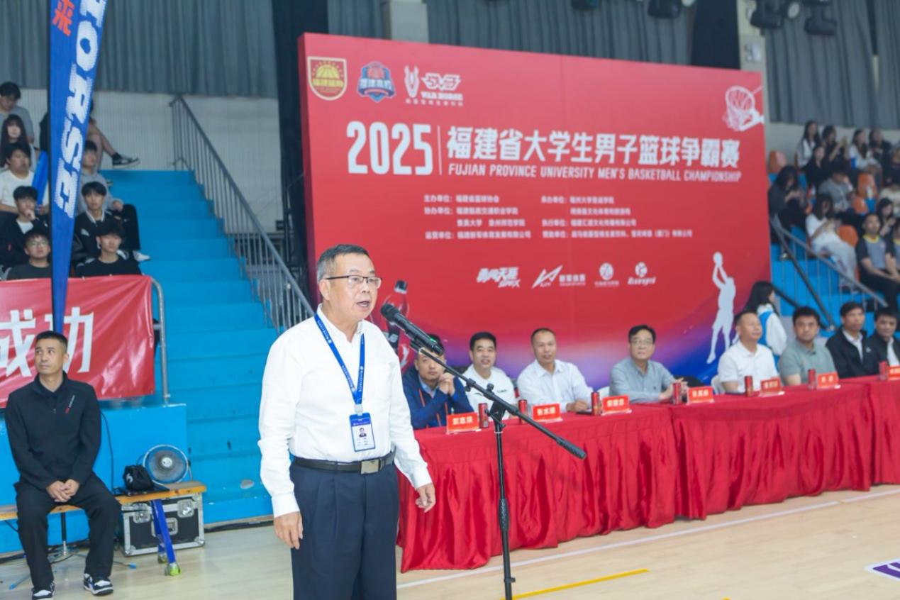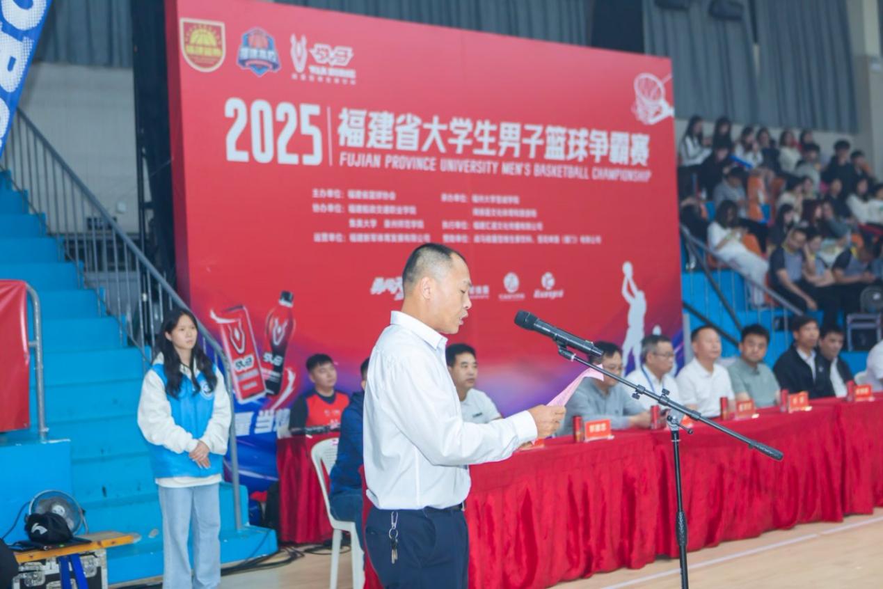 2025年福建省大學(xué)生男子籃球爭(zhēng)霸賽在4月24日晚在我校舉行開(kāi)幕式。福建省籃球協(xié)會(huì)副秘書(shū)長(zhǎng)何瑋翔、福建省公安體育協(xié)會(huì)秘書(shū)長(zhǎng)朱凱、福建船政交通職業(yè)學(xué)院副院長(zhǎng)陳常暉、福建理工大學(xué)體育部主任林長(zhǎng)地、福州大學(xué)至誠(chéng)學(xué)院黨委副書(shū)記林文麟、福建師范大學(xué)公共體育部副主任鐘曉波、福建警察學(xué)院戰(zhàn)術(shù)系主任林陽(yáng)東、福建船政交通職業(yè)學(xué)院通識(shí)教育學(xué)院院長(zhǎng)郭建忠、閩侯縣文化體育和旅游局局長(zhǎng)張其標(biāo)、福建師范大學(xué)體育科學(xué)院籃球教研室主任、本次比賽裁判長(zhǎng)張水順等領(lǐng)導(dǎo)和嘉賓出席了開(kāi)幕式。