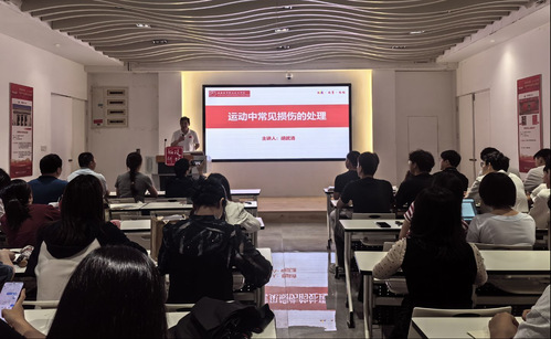胡武清憑借多年臨床經(jīng)驗(yàn),系統(tǒng)講解了運(yùn)動(dòng)損傷類型、運(yùn)動(dòng)損傷的案例分析等內(nèi)容,通過生動(dòng)的案例展示,他重點(diǎn)分析了踝關(guān)節(jié)扭傷、肌肉拉傷、膝關(guān)節(jié)損傷等常見運(yùn)動(dòng)傷害的應(yīng)急處理“黃金法則”,并現(xiàn)場演示了RICE原則(休息、冰敷、加壓包扎、抬高患肢)的正確操作方法。針對大學(xué)生群體特點(diǎn),特別強(qiáng)調(diào)了運(yùn)動(dòng)前的動(dòng)態(tài)熱身、運(yùn)動(dòng)中的自我保護(hù)意識(shí)以及運(yùn)動(dòng)后的科學(xué)放松等預(yù)防措施。
