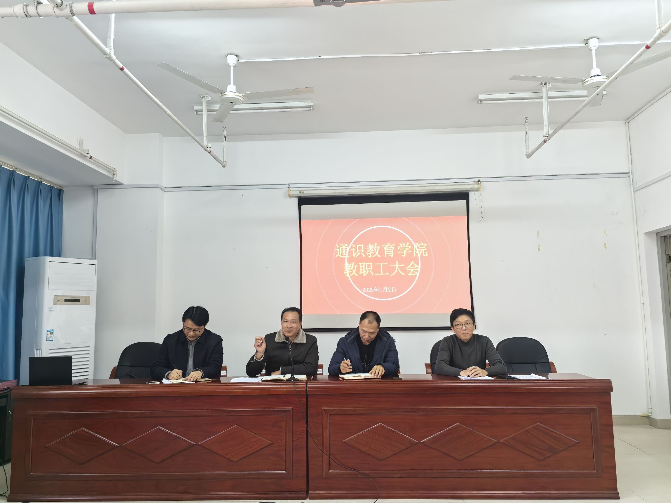 2025年1月2日,福建船政交通職業(yè)學(xué)院通識教育學(xué)院召開期末教職工大會,會議組織了多項重要理論學(xué)習(xí),并總結(jié)期末教科研工作,為新學(xué)年工作指明方向。
