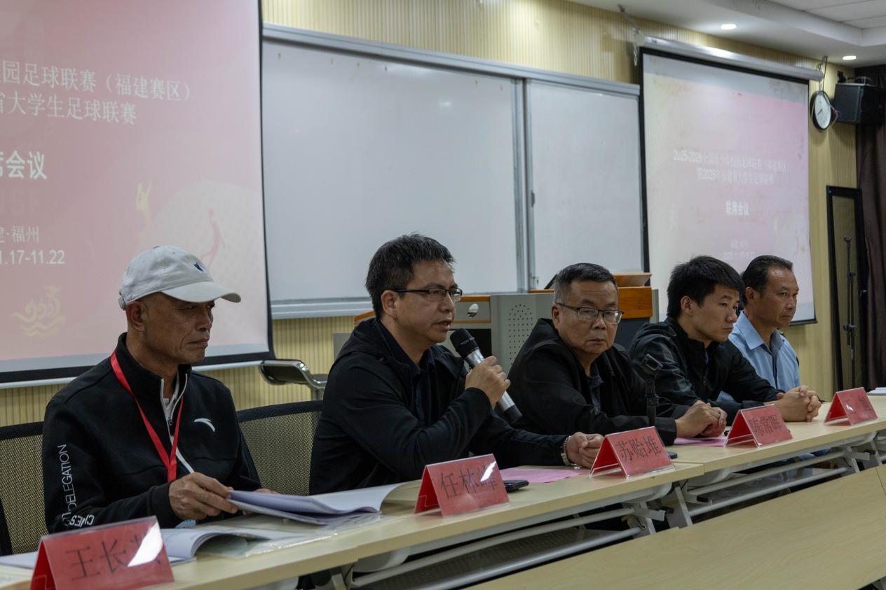 2025年10月,由福建省教育廳主辦、福建船政交通職業(yè)學(xué)院承辦的2025年福建省大學(xué)生足球聯(lián)賽(男子乙組、女子丙B組)賽前聯(lián)席會(huì)議在我校順利召開(kāi)。福建省教育廳體衛(wèi)藝語(yǔ)處蘇貽堆處長(zhǎng)、我校陳常暉副院長(zhǎng)、通識(shí)教育學(xué)院陳火城書(shū)記、比賽監(jiān)督凌子勇教授、任林峰教授、裁判長(zhǎng)王長(zhǎng)其老師以及各參賽高校領(lǐng)隊(duì)、教練員出席會(huì)議。會(huì)議由通識(shí)教育學(xué)院院長(zhǎng)郭建忠主持。