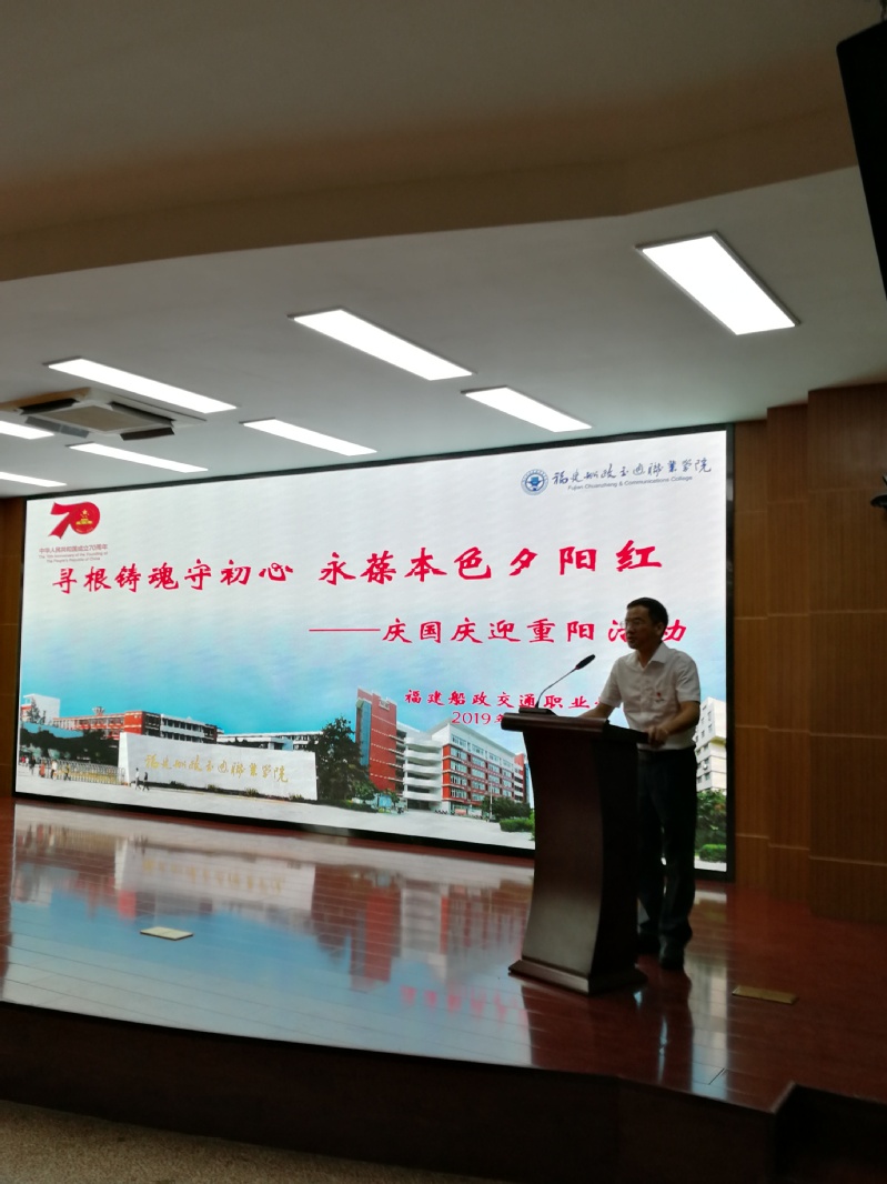 金秋送爽山河美,丹桂飄香慶輝煌,在新中國成立70周年之際,我們迎來了2019年九九重陽節(jié)。值此雙節(jié)來臨之際,今天學院舉行了“尋根鑄魂守初心,永葆本色夕陽紅” 為主題的慶國慶迎重陽活動。參加活動的有學院黨委張海明書記、陳錦輝院長、陳宜大副書記、高汝武副院長、張祖柱副院長、陳艷紅副院長,以及學院離退休教職工,離退休工作領導小組成員、關心下一代工作委員會成員。