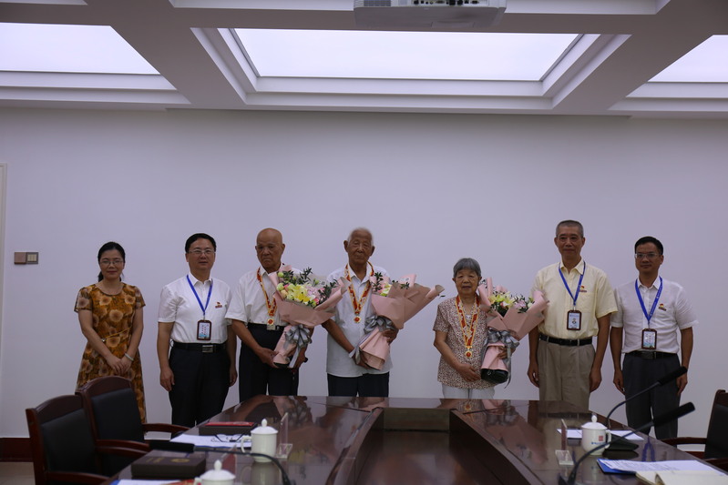 9月25日下午,在慶祝新中國成立70周年之際,學院召開了“慶祝中華人民共和國成立70周年紀念章”頒發(fā)儀式,會議由黨委副書記陳宜大主持,黨委書記張海明、院長陳錦暉、副院長陳艷紅分別為離休干部和建國前工人劉樹松、吳厚麗、項榮顯佩戴了中共中央、國務院、中央軍委頒發(fā)的“慶祝中華人民共和國成立70周年紀念章”,并送上鮮花和慰問金2000元,及時傳達黨和政府為建立新中國作出特殊貢獻的老同志的關心和愛護。張海明書記表示,先輩們付出了鮮血甚至生命的代價才迎來革命的勝利,今天幸福生活我們會倍加珍惜,在工作中我們繼承發(fā)揚老同志的優(yōu)良傳統(tǒng)和作風,關心照顧老干部、老黨員。