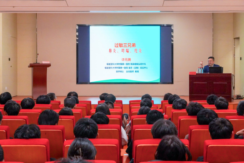 本次活動(dòng)學(xué)院邀請(qǐng)了福建醫(yī)科大學(xué)附屬第一醫(yī)院醫(yī)學(xué)博士、著名耳鼻咽喉-頭頸外科/過敏中心主任許元騰教授進(jìn)校開展《過敏三兄弟-鼻炎、哮喘與皮炎》科普知識(shí)講座。許教授以深入淺出的方式,詳細(xì)講解了過敏性鼻炎、哮喘和皮炎等常見過敏性疾病的成因、癥狀及預(yù)防方法,并強(qiáng)調(diào)過敏性疾病并不可怕,關(guān)鍵在于提高認(rèn)識(shí),科學(xué)防治。講座現(xiàn)場互動(dòng)氣氛熱烈,師生們紛紛表示受益匪淺。