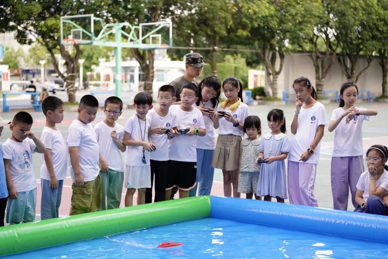 豐富多彩、手腦并用的研學實踐讓孩子們沉浸于趣味盎然的科學實驗世界?!盎鹕絿姲l(fā)”“聲光電” 互動式探究性實驗,激發(fā)孩子們科學興趣;飛機結構、飛行原理、不同機型用途講解,橡皮筋動力飛機模型制作,探索解碼飛機飛行與設計奧秘;科創(chuàng)手工船舶制作和動力艇操控帶來“小航模-大國防”的生動體驗,讓孩子們在創(chuàng)新思想與工程思維的碰撞激蕩中,提升科學素養(yǎng),培育科創(chuàng)思維和工匠精神。