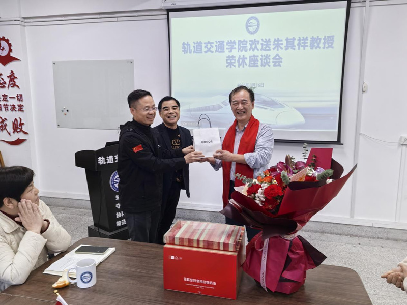 3月16日下午,軌道交通學(xué)院為朱其祥教授舉行溫馨而隆重的榮休歡送會(huì)。學(xué)院領(lǐng)導(dǎo)、教職工們齊聚一堂,共敘情誼、歡送前輩。
