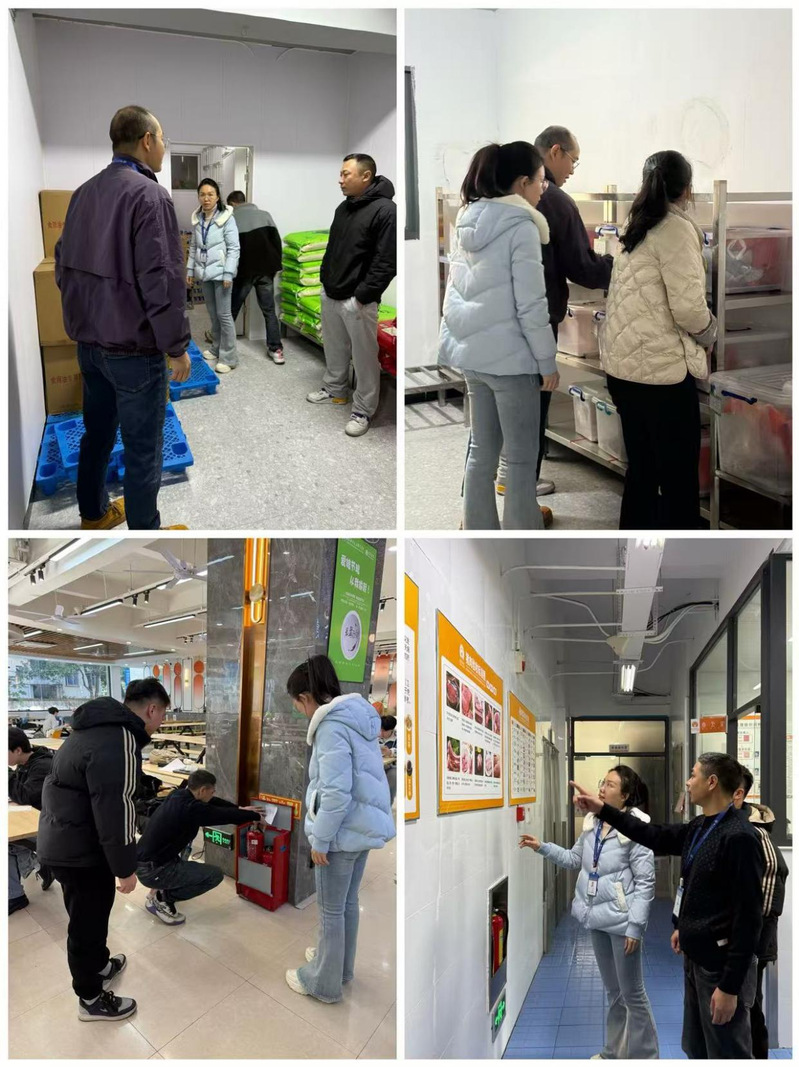 2024年12月30日上午,由后勤管理處副處長(zhǎng)夏樑波帶隊(duì)前往學(xué)院各校區(qū)食堂,對(duì)各食堂消防安全、環(huán)境衛(wèi)生、進(jìn)貨渠道及臺(tái)賬、員工健康臺(tái)賬、食品“一品一碼”追溯體系錄入情況、倉(cāng)庫(kù)貯存、食品加工操作及烹調(diào)等涉及食品安全的重要環(huán)節(jié)進(jìn)行全面檢查。對(duì)檢查中發(fā)現(xiàn)的問(wèn)題要求立查立改,堅(jiān)決消除一切安全隱患。