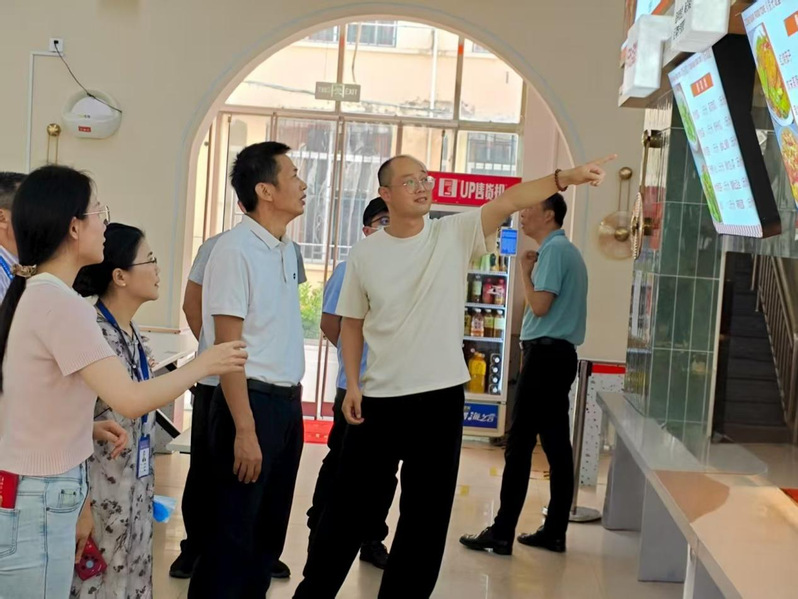 為全面貫徹落實習近平總書記關于食品安全“四個最嚴”的要求,防范化解校園食品風險隱患,筑牢校園食品安全防線,2025年8月31日,學院黨委委員、紀委書記謝建山和學院黨委委員,副院長陳艷紅帶領紀委辦公室、安全保衛(wèi)處、后勤管理處等職能部門負責人,深入學院各食堂開展秋季開學校園食品安全專項檢查,全面排查風險隱患,全力守護師生“舌尖上的安全”。