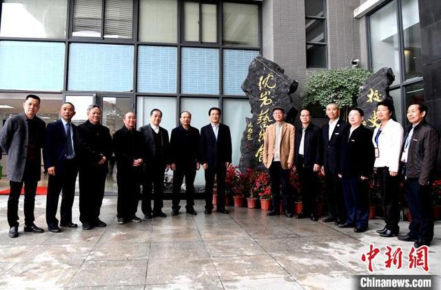 著名藝術(shù)家沈巖(右三)與來賓共同為沈巖藝術(shù)館開館暨沈巖工作室掛牌成立啟幕。