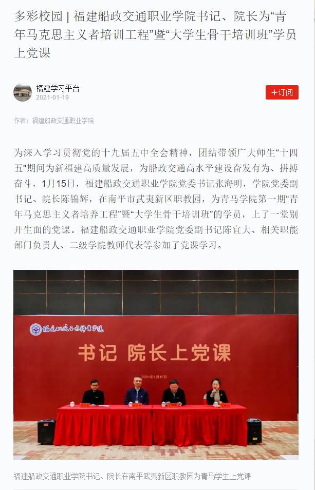 學(xué)習(xí)強(qiáng)國(guó)APP2021.01.19:多彩校園 | 福建船政交通職業(yè)學(xué)院書記、院長(zhǎng)為“青年馬克思主義者培訓(xùn)工程”暨“大學(xué)生骨干培訓(xùn)班”學(xué)員上黨課