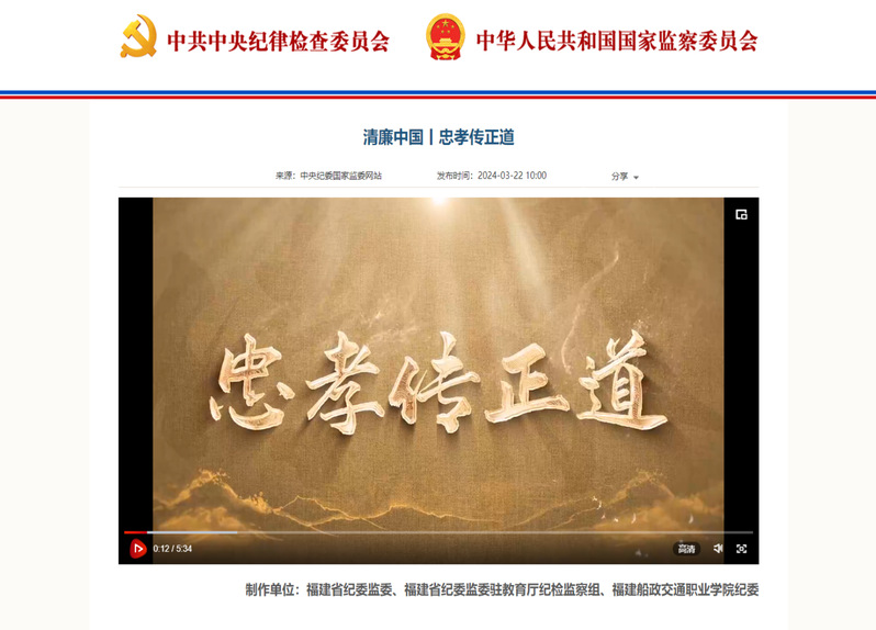 媒體聚焦 | 中央紀(jì)委國(guó)家監(jiān)委網(wǎng)站“清廉中國(guó)”欄目,刊播嚴(yán)復(fù)家風(fēng)家訓(xùn)微視頻《忠孝傳正道》