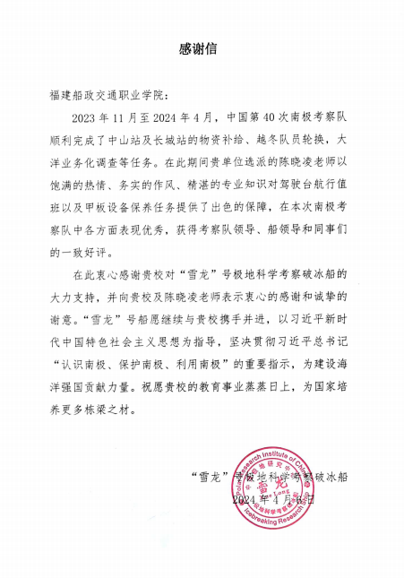 4月15日,“雪龍”號(hào)極地科考船順利返航回家,靠泊在位于上海外高橋的中國(guó)極地科考國(guó)內(nèi)基地碼頭,圓滿完成中國(guó)第40次南極考察任務(wù)。我院選派陳曉凌老師赴“雪龍”號(hào)船,參加了中國(guó)第40次南極考察。