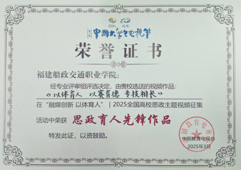 近日,我院選送的視頻作品《以體育人 以賽育德 專技相長》在“融媒創(chuàng)新 以體育人”2025全國高校思政主題視頻征集活動中榮獲思政育人先鋒作品。